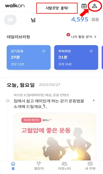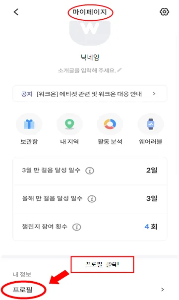 1️⃣ 워크온 챌린지 참여 클릭