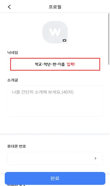 참여를 위해서는 닉네임을 학교-학년-반-이름으로 변경해 주세요!