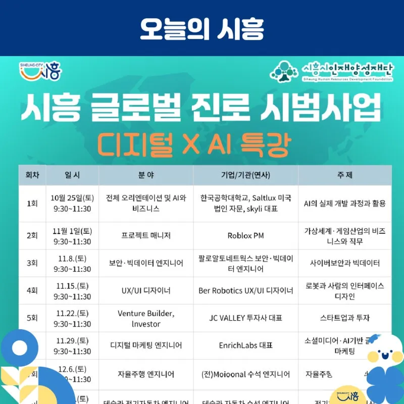 시흥시인재양성재단은 지난 10월 26일부터 관내 학생 및 학부모를 대상으로 ‘시흥 글로벌 진로 시범사업’ 운영을 시작했습니다.