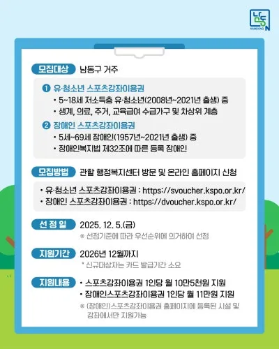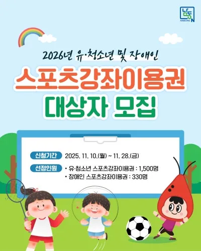 2026년 유·청소년 및 장애인 스포츠강좌이용권 대상자 모집