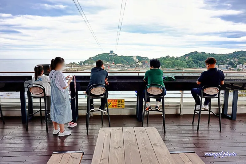 ▼ 장호역 전망대에서 보는 해상케이블카 모습은 탑승하고 보이는 풍경보다 더 아름답게 보여 커피한잔 마시면서 둘러보는 풍경이 아주 아름답습니다.