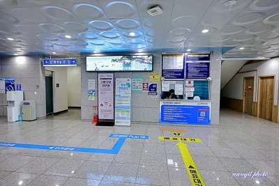 ▼ 주차장에서 바닥에 보이는 노란선을 따라서 들어가면 탑승권 매표소가 나오는데 탑승 요금은 성인기준 편도 6,000원, 왕복 10,000이며 매표후 파란색 동선을 따라가면 엘리베이터를 타고 탑승장으로 이동하게 됩니다.