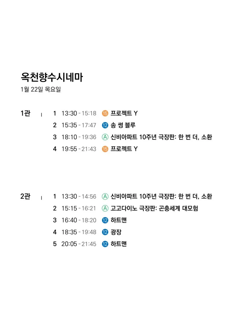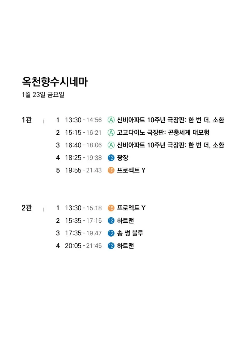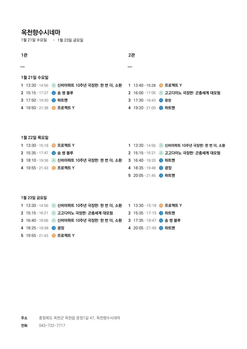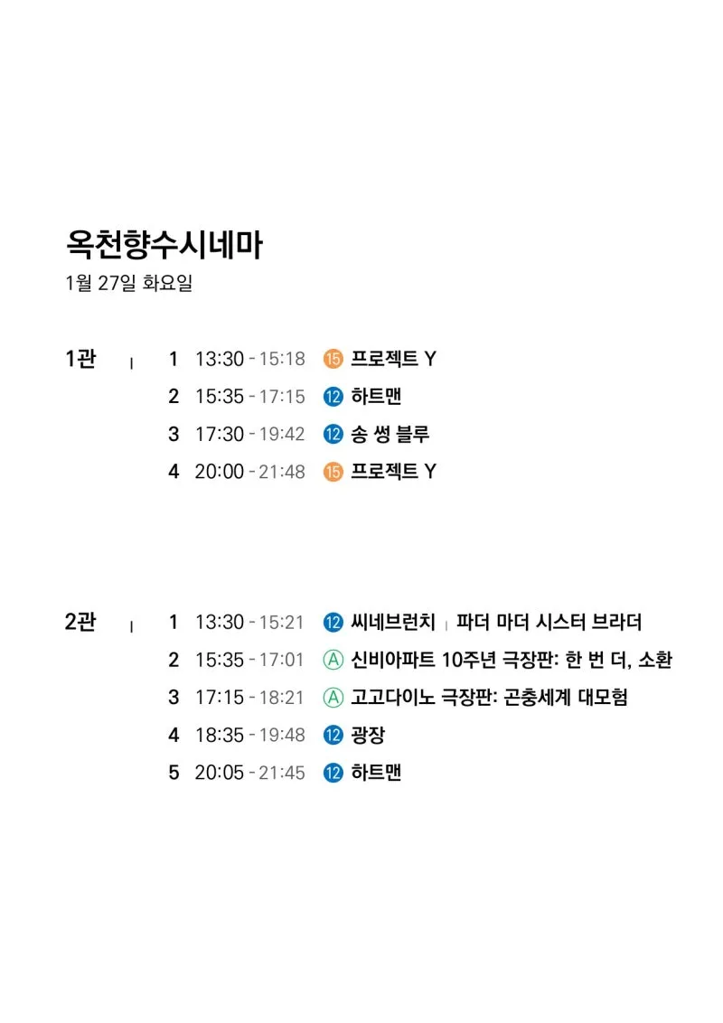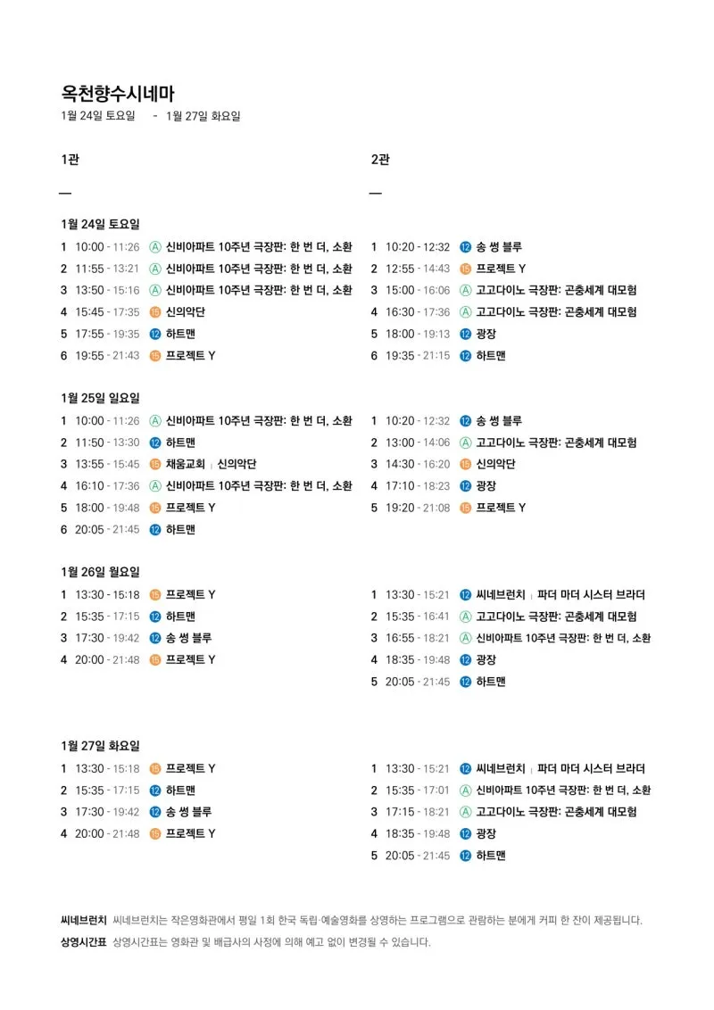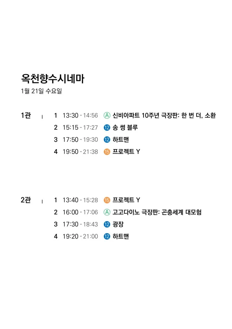 📽1월 21일(수)~1월 27일(화) 일일 상영 영화 시간표📽