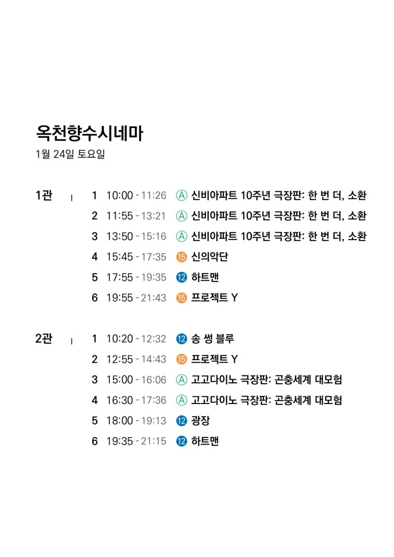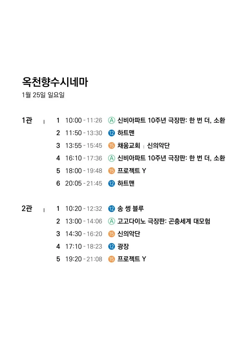 🎬1월 21일(수)~1월 27일(화) 전체 상영 영화 시간표🎬