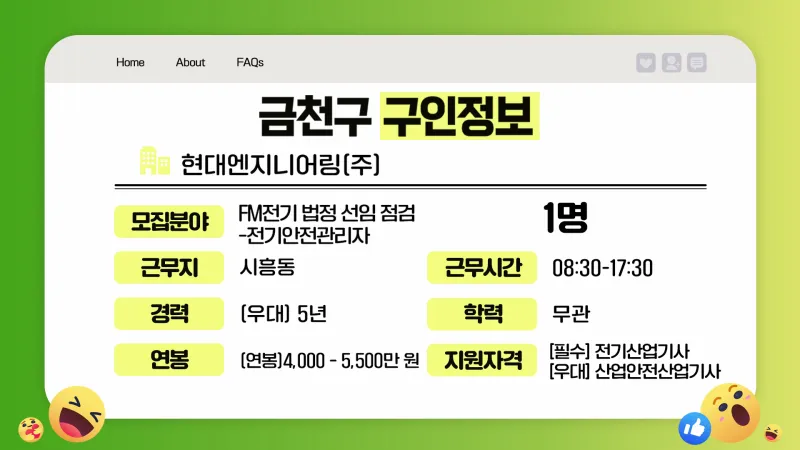 FM전기 법정 선임 점검(전기안전관리자) 직원을 모집합니다.
