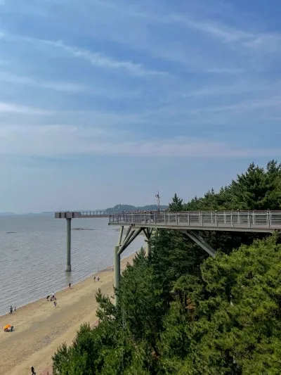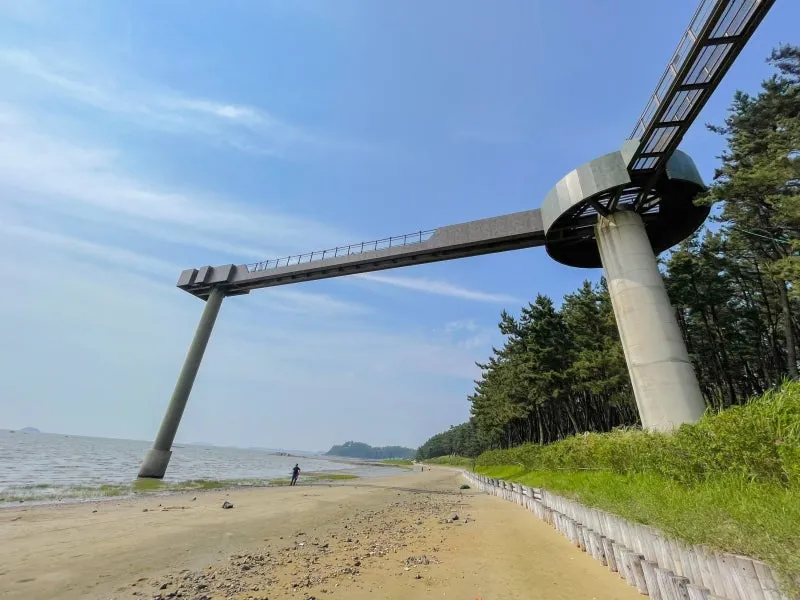 추천 동선: 주차장 → 맥문동 꽃밭 → 소나무 숲 산책로 → 해안 백사장 → 장항 스카이워크