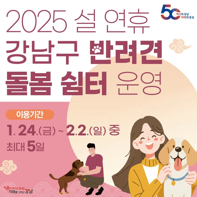 강남구 반려인이라면 주목! 2025 설 연휴 강남구 반려견 돌봄 쉼터 운영 안내