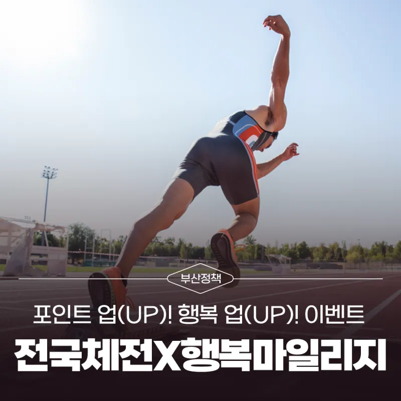 부산시는 제106회 전국체육대회 개최를 기념하여 부산이즈굿 동백전 「행복마일리지」 특별 이벤트인 '포인트 업(UP)! 행복 업(UP)!'을 오는 10월 17일부터 23일까지 7일간 추진합니다.