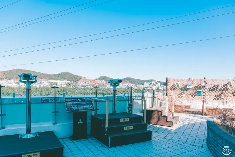 5층의 외부 공간에는 망원경이 설치되어 있어서 삼호 대숲을 둘러보면서 철새들을 찾을 수 있었어요.