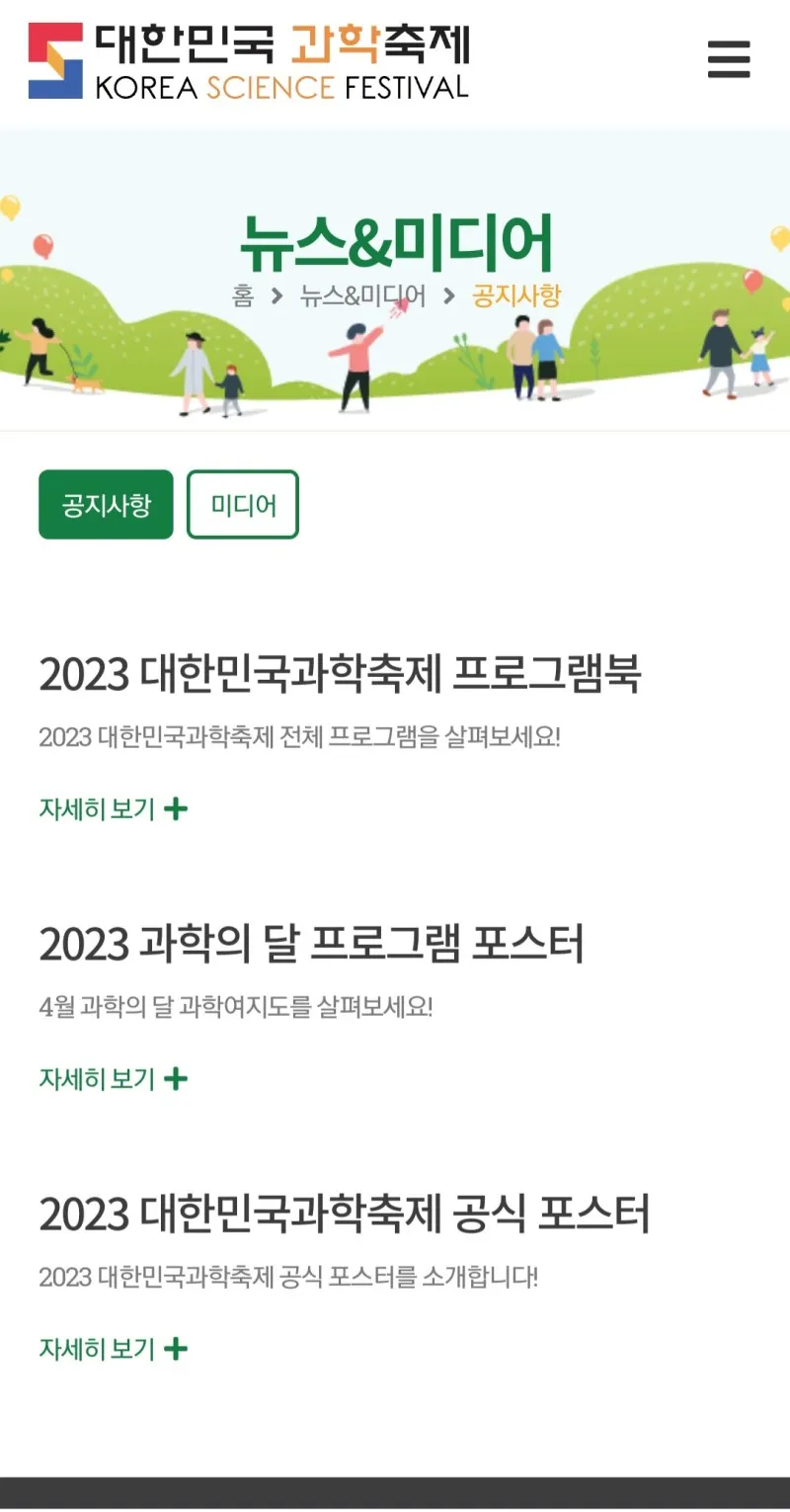 2023 대한민국 과학축제에는 전시, 체험, 강연, 공연, 시승, 부대 프로그램, 지역 연계 프로그램 등이 정말 다양한 프로그램이 준비되어 있는데요. 아래의 대한민국과학축제 홈페이지 링크를 통해 보다 자세하게 살펴볼 수 있고 유형별 프로그램을 다운로드하여 열람 가능합니다.