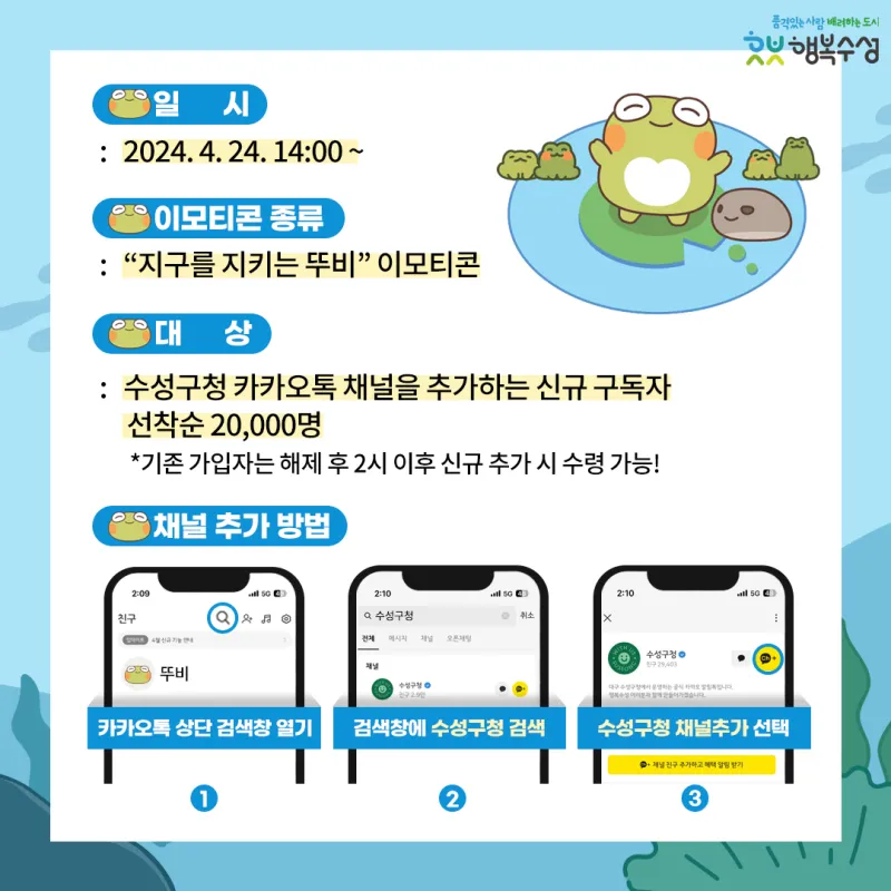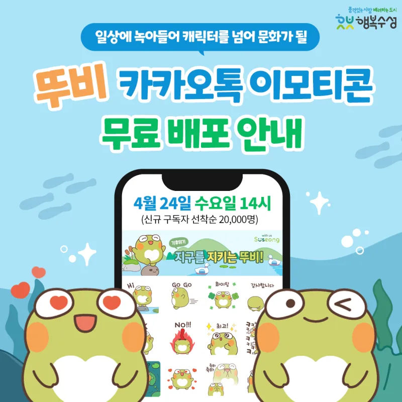 대구 수성구 마스코트! '뚜비' 카카오톡 이모티콘을 무료로 받으세요!