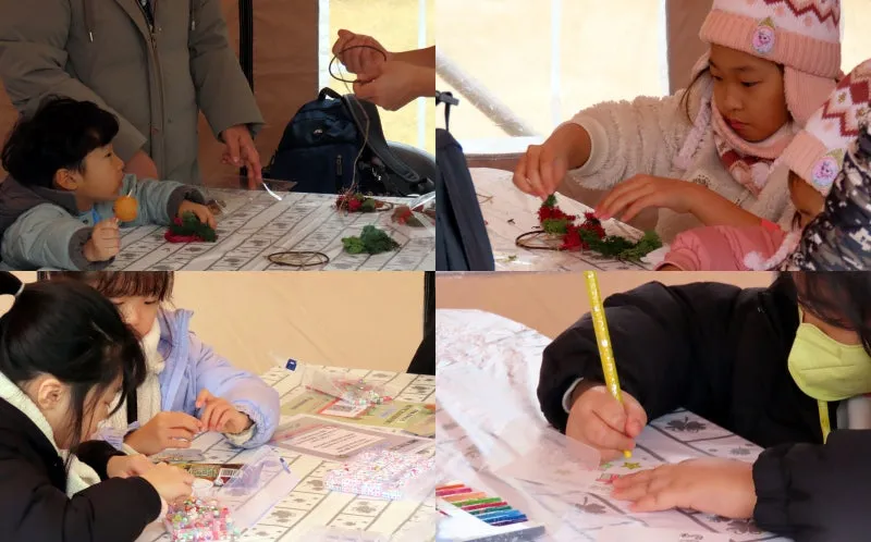 크리스마스 만들기 체험으로 리스, 카드, 비즈 만들기로 아이들이 진지하고 열정적인 참여가 돋보였습니다.