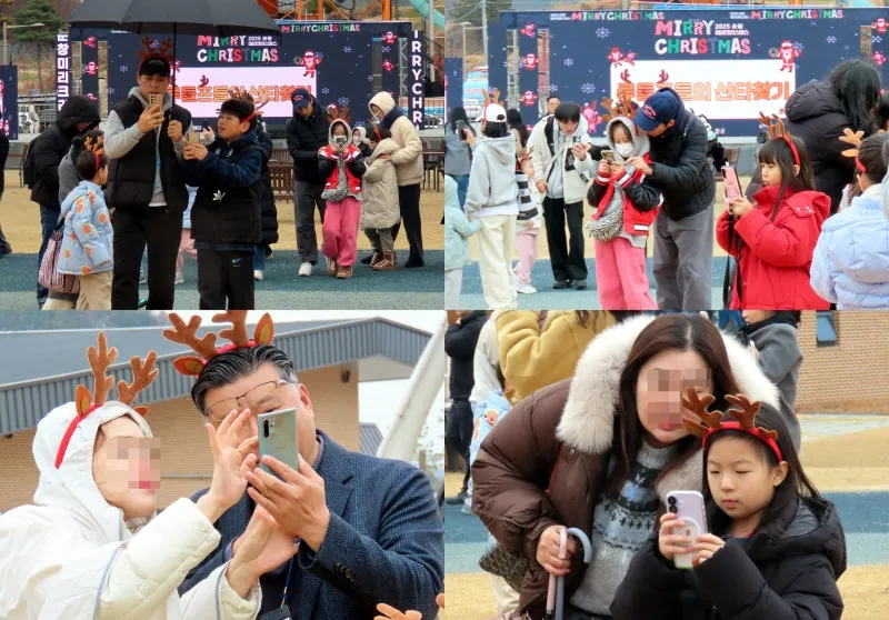핸드폰으로 산타 찾기 바쁘고 찾은 산타를 잡기에 신이 납니다. 부모님과 아이들이 합심하여 찾습니다.