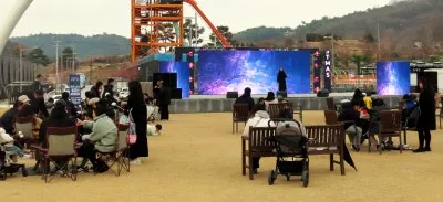 중앙무대에 MIRRY CHRISTMAS 축제 시작을 알리는 조명이 켜지자…