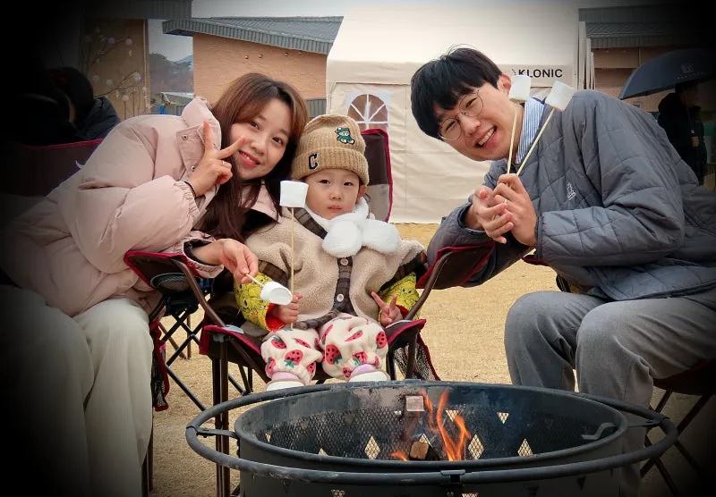 마시멜로인 경우는 중앙무대 안에 화로가 준비되어 있어서 따뜻한 화롯불 앞에서 가족과 친구들과 직접 구어 드시면서 얘기 꽃을 피웁니다.