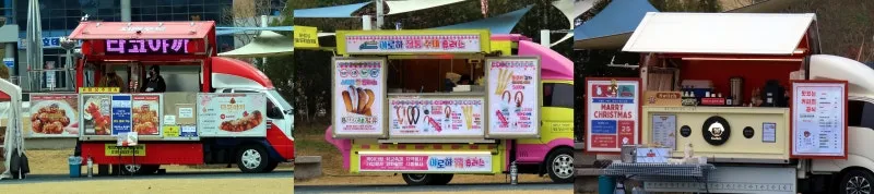 먹거리로는 간단한 간식거리를 위주로 한 트럭 푸드가 있었습니다.