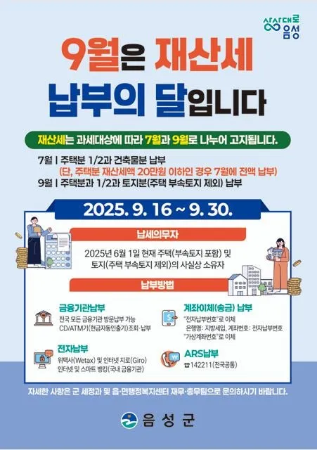 #충청북도 #음성군 #9월 #재산세 #납부의달 #납세