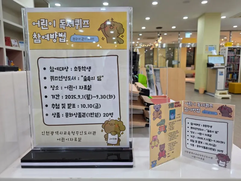 어린이 독서퀴즈가 진행 중에 있습니다.