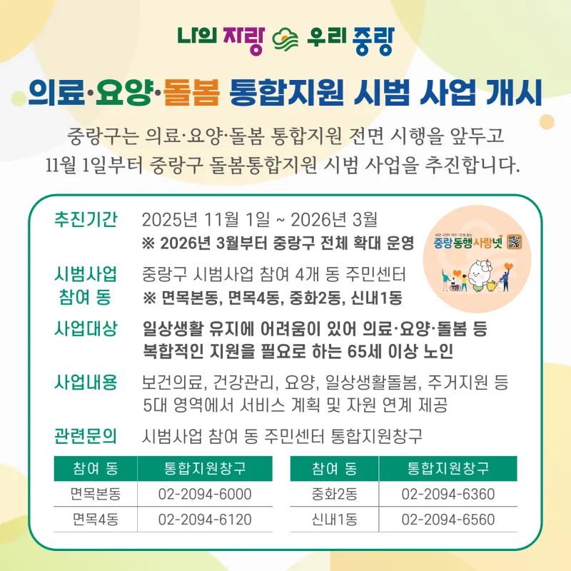 중랑구 의료·요양·돌봄 통합지원 시범 사업 개시