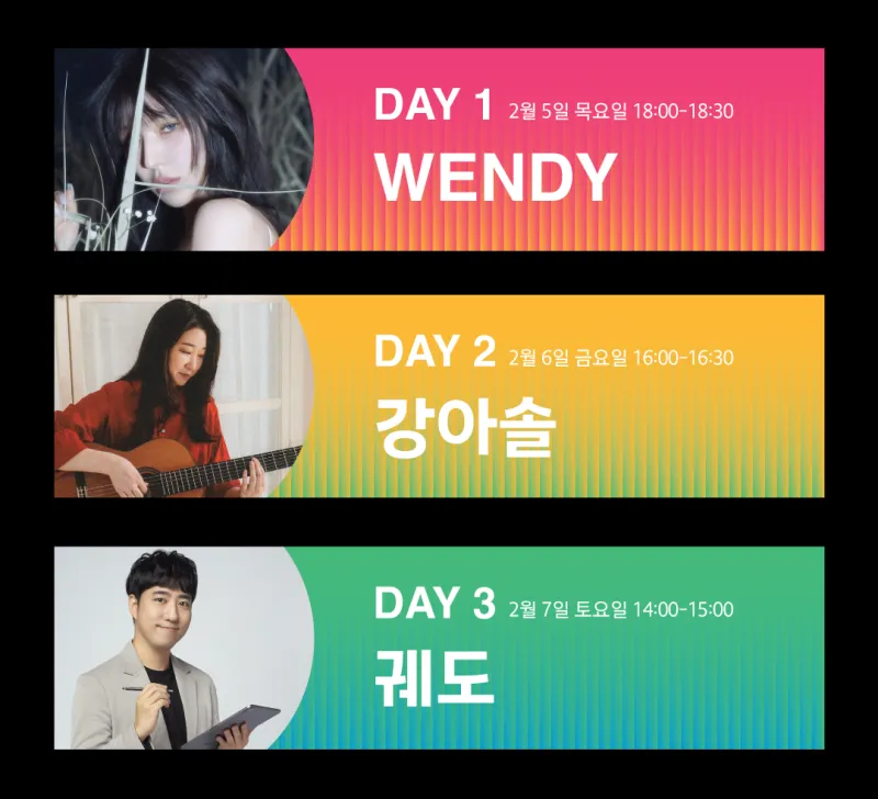 웬디(WENDY), 강아솔, 궤도 등과 함께 3일동안 펼쳐지는 미니콘서트 🎤