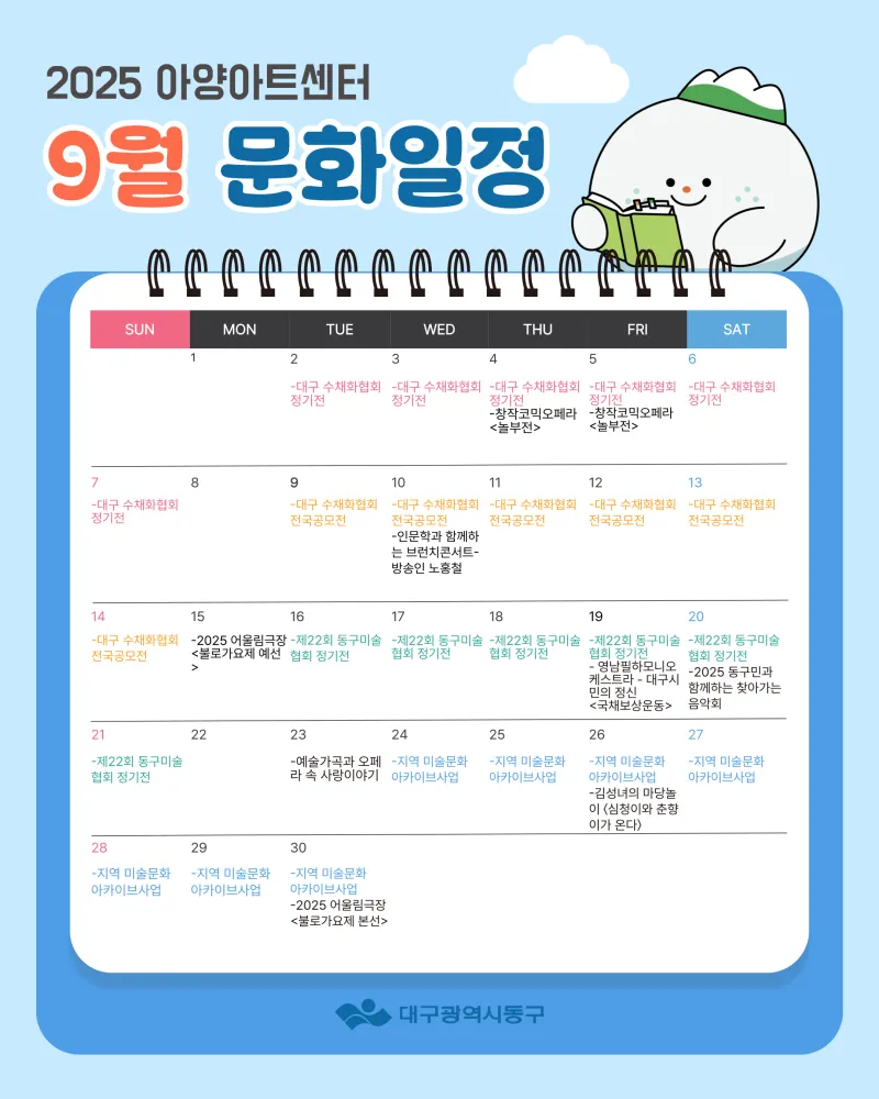 9월 대구 동구 가볼만한 곳 아양아트센터 문화 일정