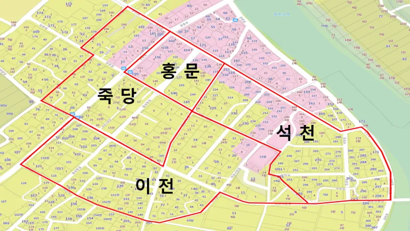안의면 도시재생사업 대상지는 아래 붉은 선으로 표시된 구역으로,