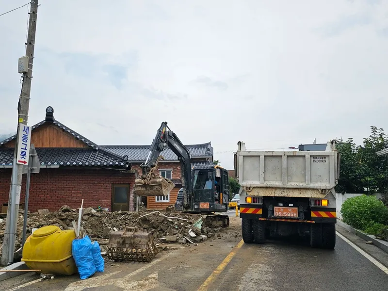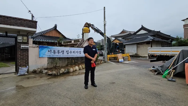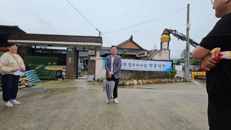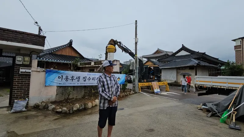 함양군청 안전도시과 남영신 담당 계장님도 빗속에 달려와 집수리사업이 안전하게 잘 진행되기를 당부 하셨습니다.