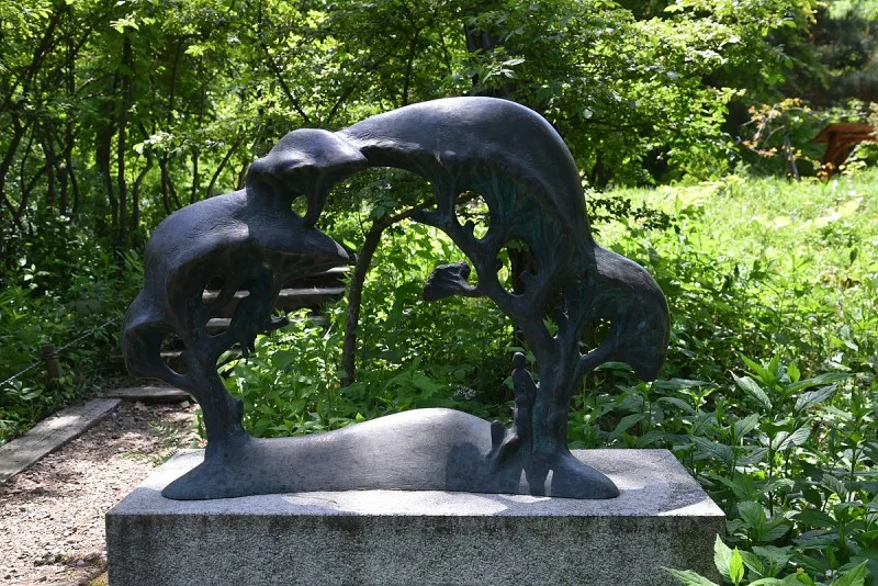 야생화 피어있는 아름다운 숲길과 조각 작품 그리고 잘 관리되고
