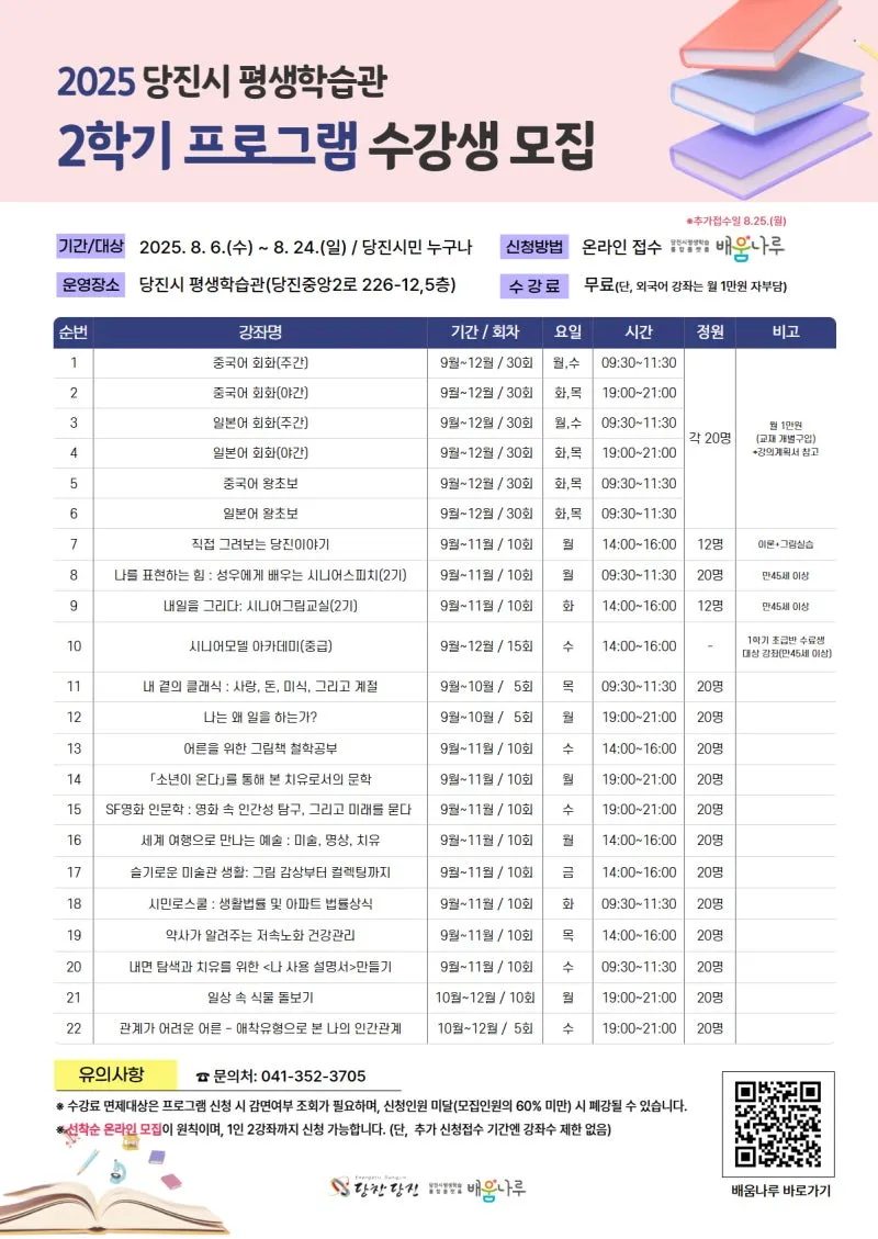 2025 당진시 평생학습관 2학기 프로그램 수강생 모집