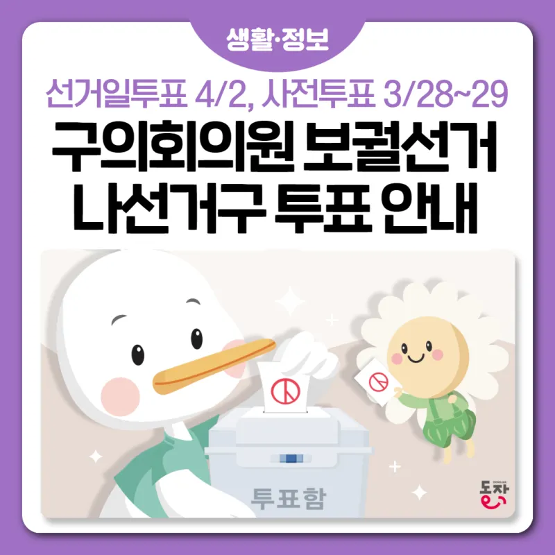 동작구구의회의원 보궐선거 나선거구(상도2·4동) 투표 안내