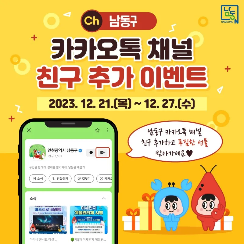 남동구 카카오톡 채널 친구 추가 이벤트