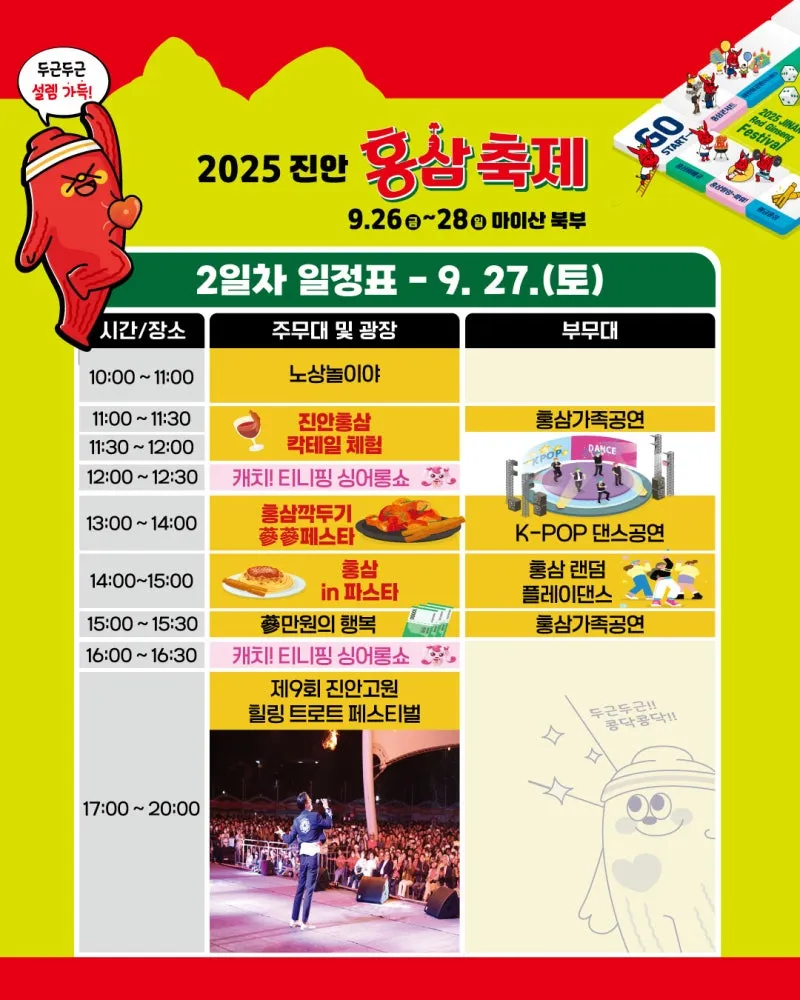 #진안 #진안군 #진안고원 #진안여행 #마이산 #가족여행 #전주근교여행 #전북핫플 #전주여행 #대전여행 #진안홍삼축제 #홍삼축제 #가을축제 #케이윌 #노라조 #하이키 #진해성 #티니핑 #축제라인업 #가족축제 #진안에서만나요