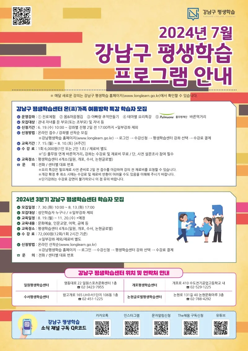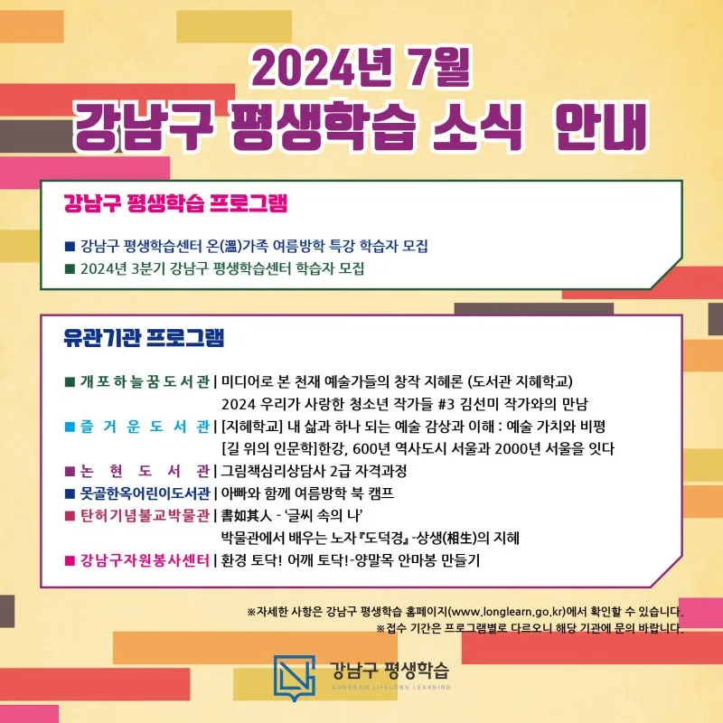 2024년 7월 강남구 평생학습 프로그램 안내