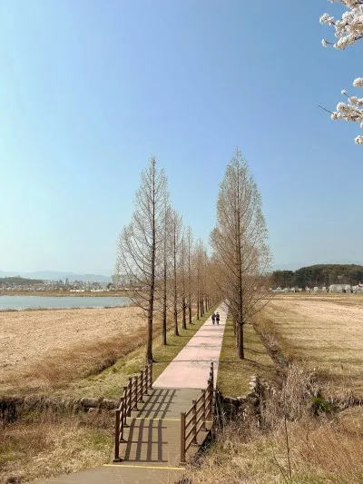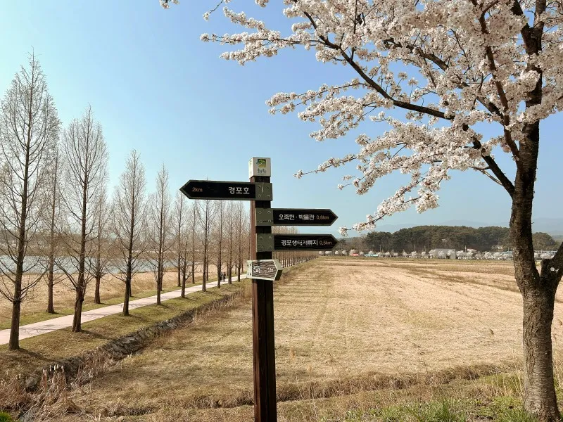 강릉 선교장 정문 매표소에서 길 건너에 위치한 강릉 생태저류지 또한 벚꽃길이 아름다워요. 메타세콰이어길로 유명하지만 그 옆 벚꽃길은 경포호 벚꽃길 보다 한가롭고 여유로워서 데이트하며 벚꽃 구경하기 좋은 곳이에요.