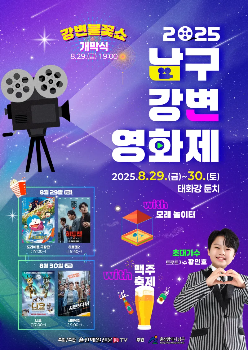8월 29일(금)-30일(토) 양일간 2025 울산 남구 강변영화제가 열립니다.