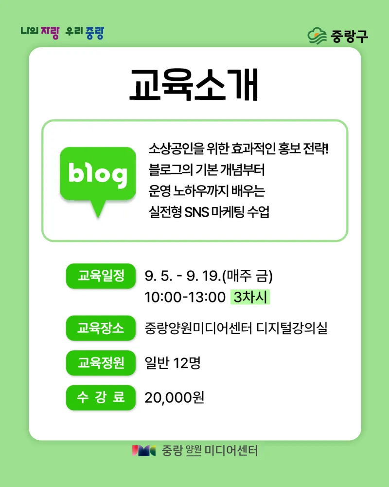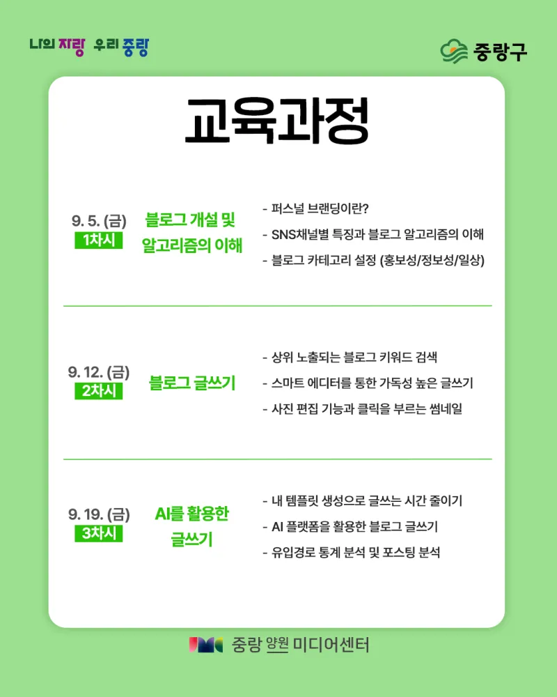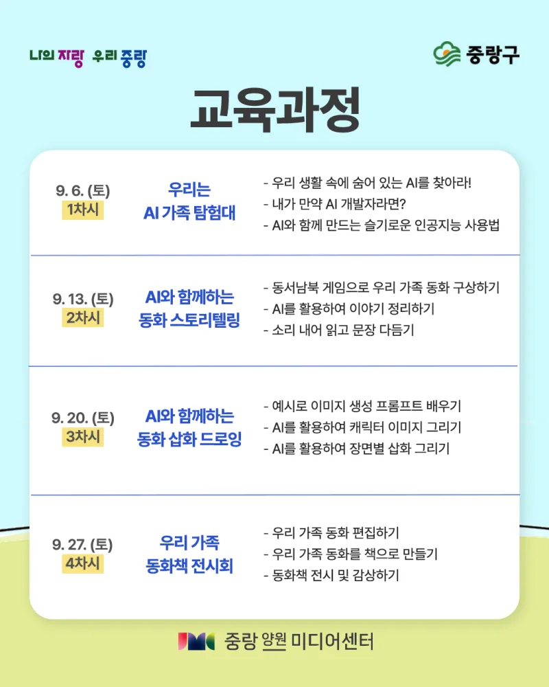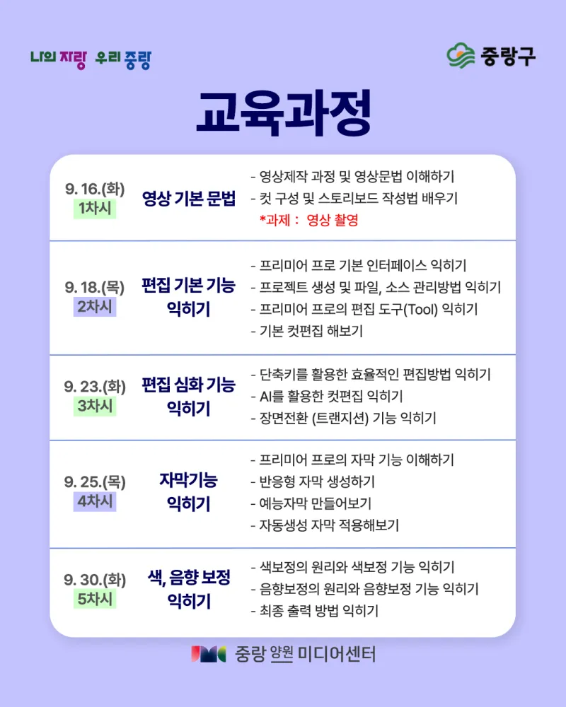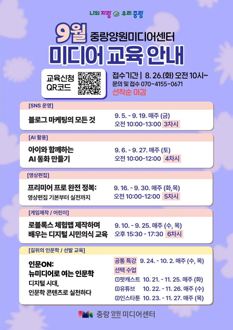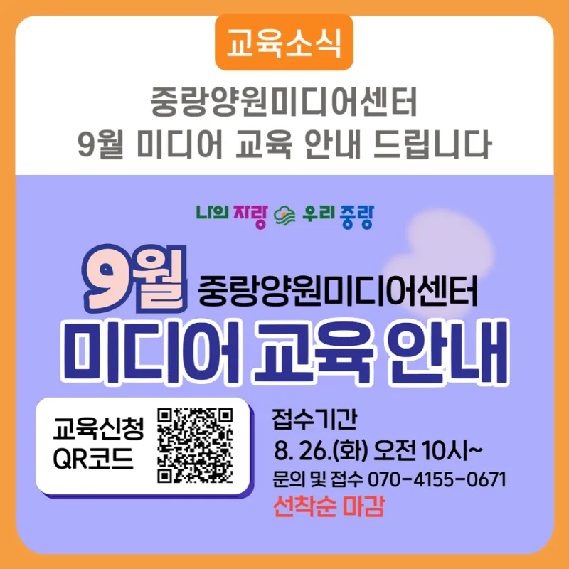 중랑양원미디어센터 9월 미디어 교육 안내 드립니다
