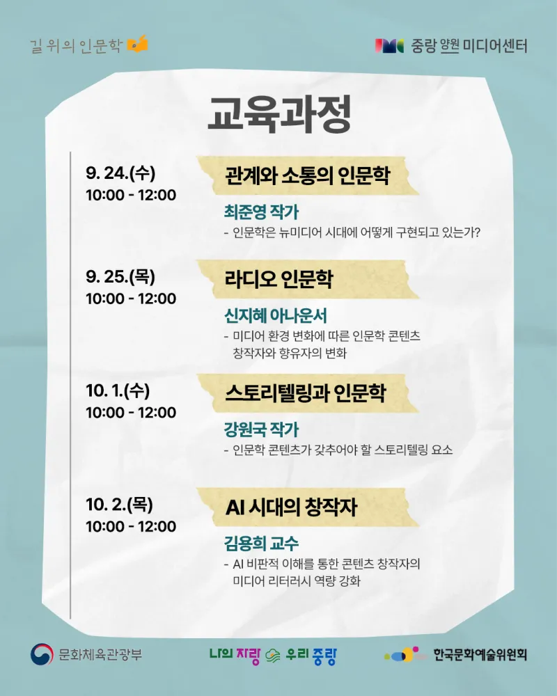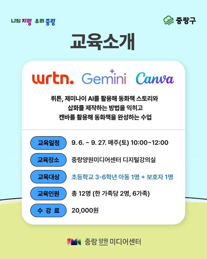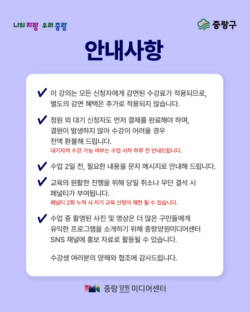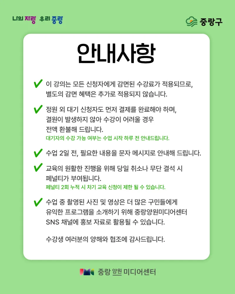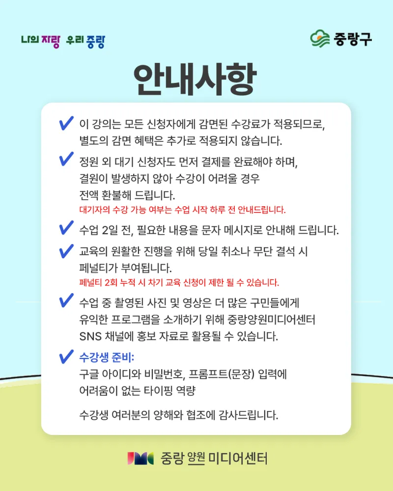 중랑양원미디어센터 9월 미디어 교육 안내 드립니다