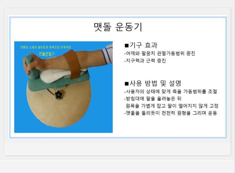 다음에는 관절가동 운동호와 맷돌 운동기입니다.