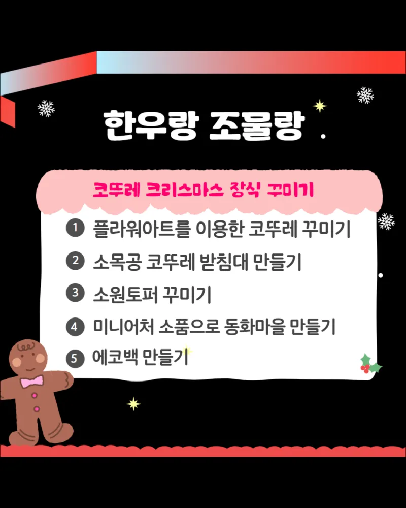 만들기 체험은 선착순 운영으로 재료 소진 시 마감됩니다.