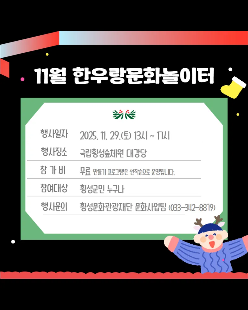#횡성 #횡성군 #횡성문화관광재단 #문화가있는날 #한우랑문화놀이터