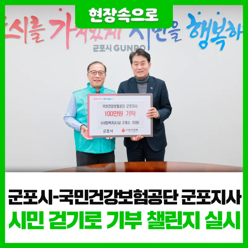 시민 걷기 기부챌린지 협약, 국민건강보험공단 일백만원 군포시에 기부