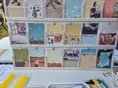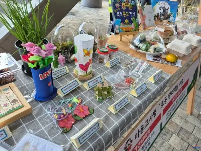 행사장을 들어서자마자 만나볼 수 있었던 학교 연계 마을 교육 과정 참여 학생 수업 성과물이었습니다.