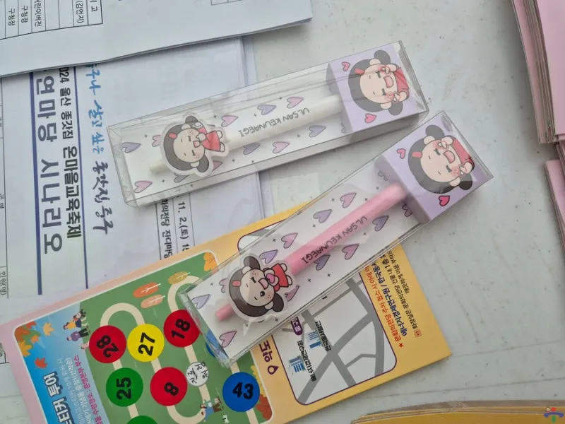 스티커 투어를 마치고 선물을 받으러 갔더니 핑크와 화이트 중 하나를 고를 수 있다고 하더라고요. 울산 중구의 자랑 큰애기 캐릭터가 그려져 있는 귀여운 볼펜이라 고민하다 핑크로 골라 봤습니다. 핑크가 큰애기가 입은 빨간 원피스와 더 어울리는 느낌이었습니다. 다양한 체험 활동으로 유익한 시간도 보내고, 귀여운 볼펜까지 받아 가니 너무 좋았습니다.