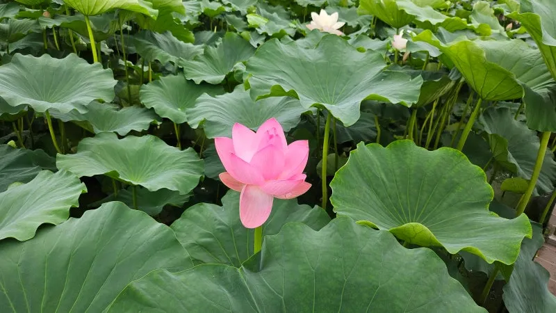 또한, 노방들 생태습지 입구쪽에는 전망대가 위치하고 있어 부들, 갈대, 연꽃 등 여러 수생식물들로 가득한 생태습지를 한 눈에 내려다 볼 수 있습니다. 노방들 생태습지에는 하얀 수련과 연분홍빛 연꽃 등이 어우러져 피어있습니다. 생태해설사분에 따르면, 올해는 다른 해에 비해 유난히 연꽃이 많이 피었다고 합니다.