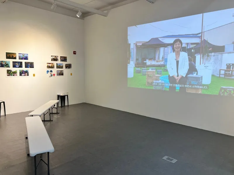 전시장 한 편에는 프로젝트 현장 스케치와 참여 예술가 인터뷰 영상 존이 조성되어 있는데요.
