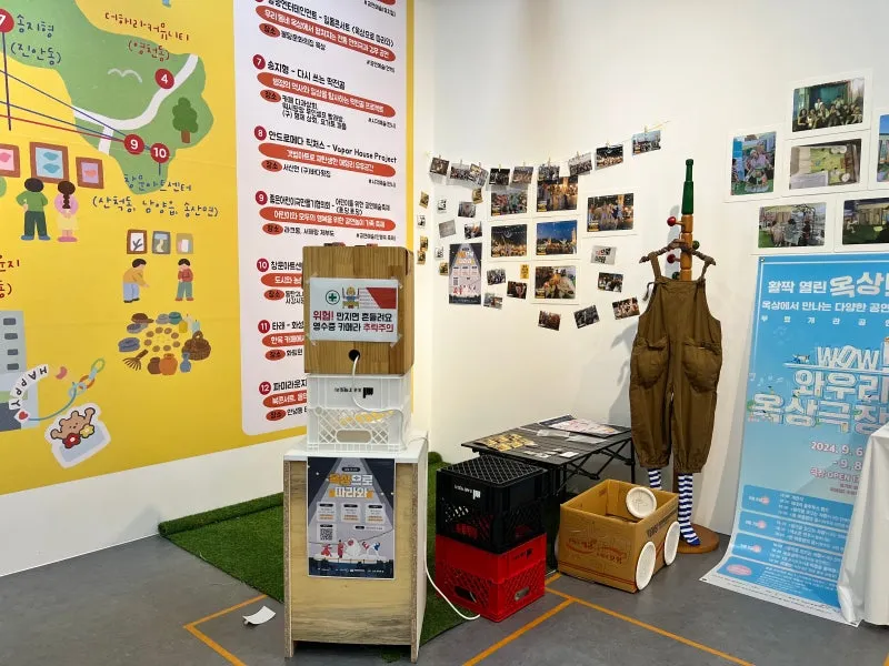 프로젝트 당시 사용했던 현장 물품과 우유 상자, 영수증 사진기 등을 전시해 두었습니다.