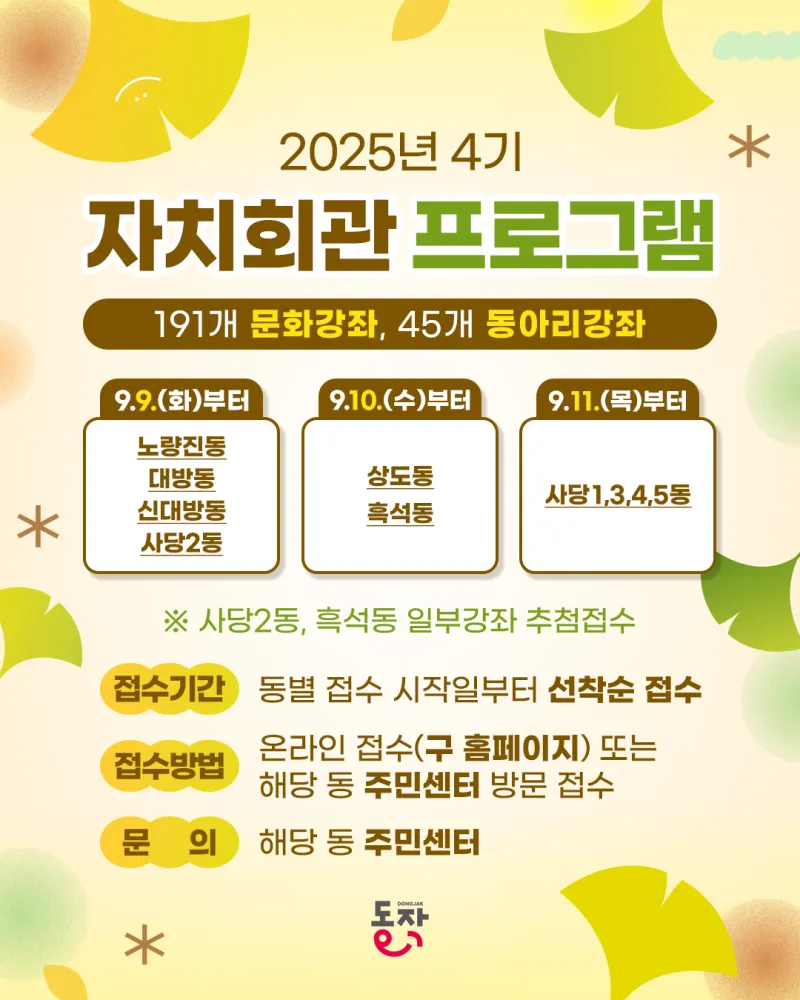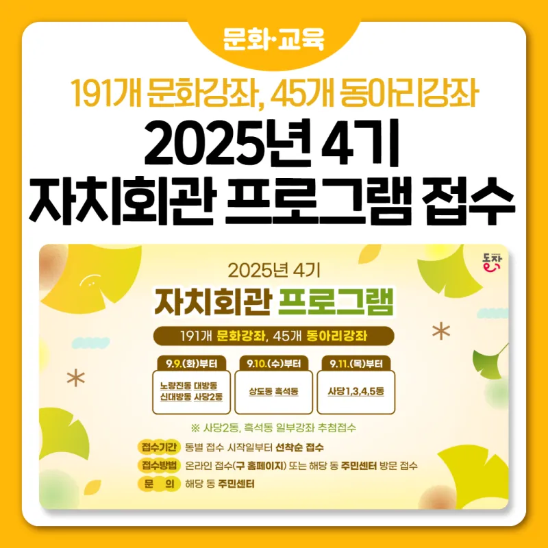 2025년 4기 자치회관 프로그램이 찾아옵니다!