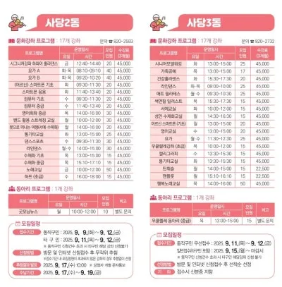 ※ 사당2동, 흑석동 일부강좌 추첨 접수