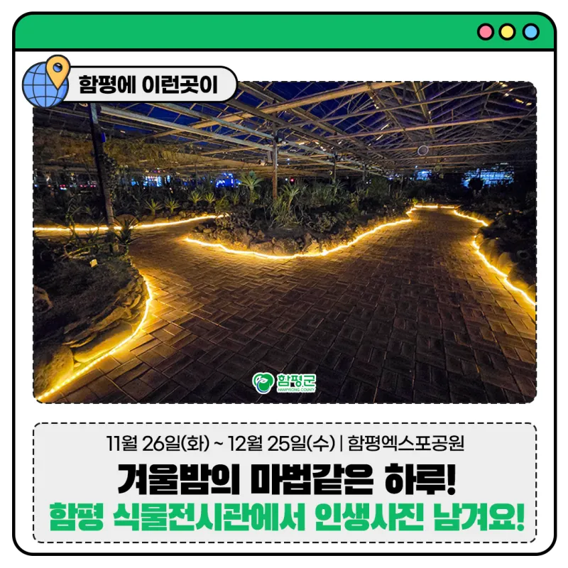 [함평 겨울 여행지] 겨울밤의 마법같은 하루! 함평 식물전시관에서 인생사진 남겨요!