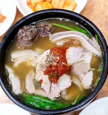 많은 유명 인사와 대기업 회장이 방문했던 이름난 맛집으로, 담백한 국물에 고기와 순대가 푸짐해 단골손님이 많은 곳입니다.
